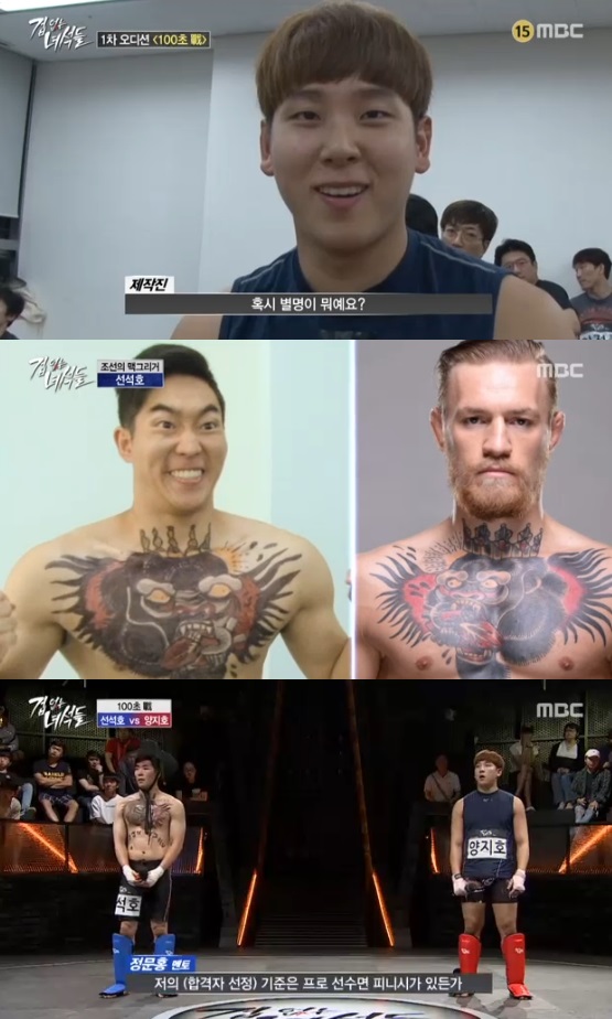 이어 '조선의 맥그리거'를 꿈꾸는 신석호가 상대로 등장했다. 양지호와 신석호가 1차 오디션에서 맞붙은 가운데 양지호는 신석호를 몰아붙이기 시작했다. 앞서 자신을 '귀요미 파이터'라고 소개하던 때와는 전혀 다른 모습이었다. 그 결과 2 PASS를 얻어 양지호가 합격의 기쁨을 맛봤다.