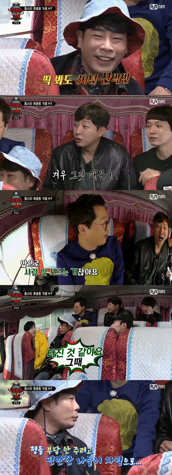 이날 이들은 다 같이 버스를 타고 MT를 떠났다. 탁재훈은 버스 안에서 뮤지의 패션을 지적했다. 뮤지는 등산 모자와 비슷한 모양의 모자를 쓰고 왔다.