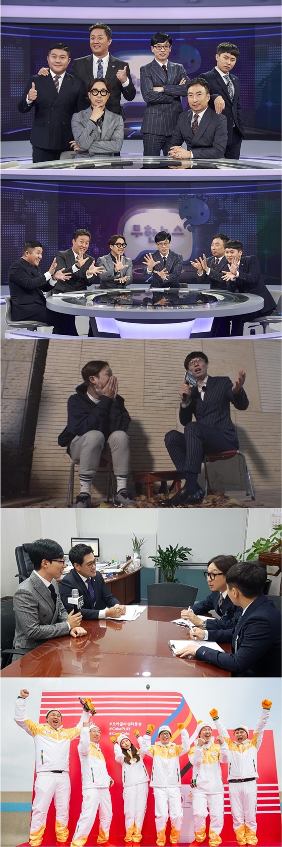 앞서 진행된 녹화에서 '무한뉴스' 메인 앵커로 돌아온 유재석의 날카로운 진행으로 멤버들은 진땀을 흘렸다. 유재석, 박명수, 정준하, 하하, 양세형과 함께 예능계 '프로봇짐러'로 활약 중인 조세호까지 함께해 재미를 더했다.