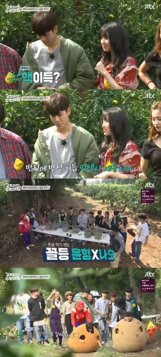 결국 윤형은 짝꿍과 함께 '풋귤먹기'게임에서 비아이와 귤 한 개 차이로 져 꼴등을 차지했고, 귤 인형을 쓴 채 벌칙을 수행했다.