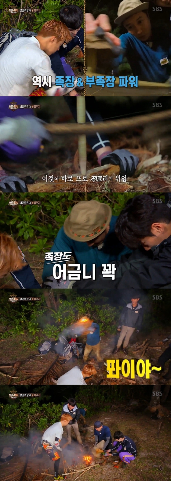 김병만과 강남이 손이 아프게 나무를 비비자 불씨가 살아났고 잔잎을 섞어 작은 불씨를 큰불로 피우는 데 성공했다. 그런 김병만의 모습을 본 팀원들은 감탄했다.