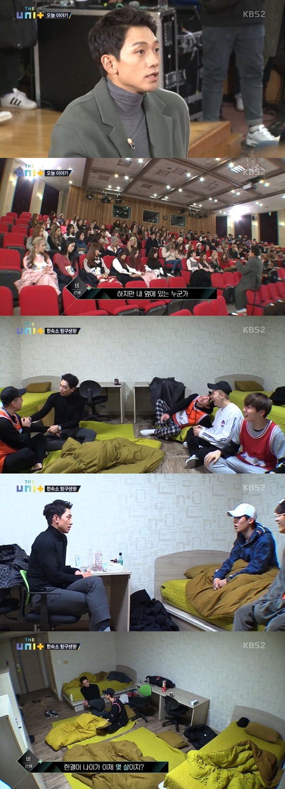 지난 9일 오후 방송된 KBS 2TV 예능프로그램 아이돌 리부팅 프로젝트 더 유닛'(이하 '더 유닛')에서 비는 합숙소에 방문해 출연자들을 만났다.