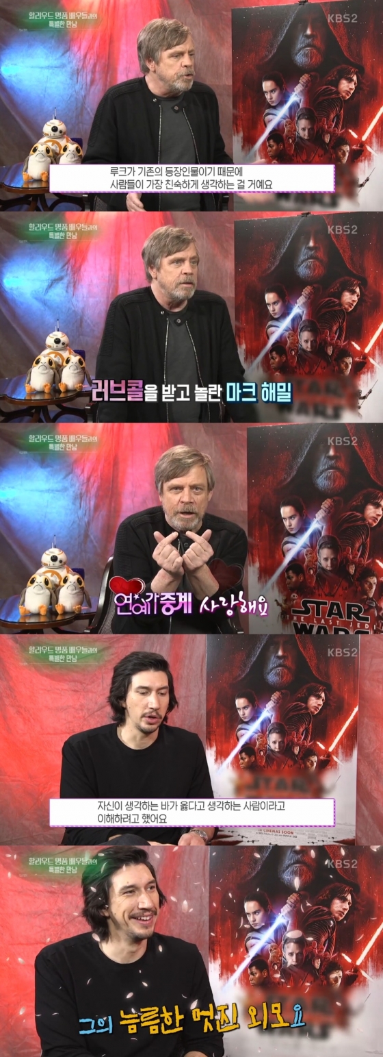 15일 오후 방송된 KBS 2TV 연예정보프로그램 '연예가중계'에서는 기욤이 '스타워즈'의 마크 해밀과 아담 드라이버를 인터뷰했다.