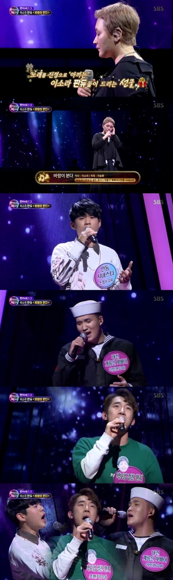 이날 방송에서 판듀 제작진의 두 번째 선물로 다시 보고 싶은 판타스틱 듀오와 1:3 무대로 이소라의 '바람이분다' 무대가 선정됐다.
