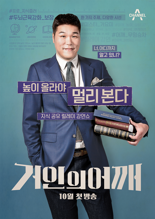 이 말이 어디 뉴턴에게만 해당하는가. 현대인들이 일상에서 마주하는 모든 것들에 적용된다. 어디서 무엇을 배우던지, 경험하던지, 사던지, 이 모두가 누군가 이루어놓은 것을 받아들이는 것이기 때문이다. 그런 의미에서 전문가의 지식을 받아들이자는 취지로 제작된 프로그램이 채널A의 ‘거인의 어깨’이다. 실제 거인 서장훈이 진행하는 ‘거인의 어깨’는 인문학 탐구생활이라는 모토를 내걸고 있다. 미학, 뇌과학, 사회학, 심리학, 세계문화 등 매회 각 분야의 전문가들이 출연해 인문학 지식을 알려주는 프로그램이다.