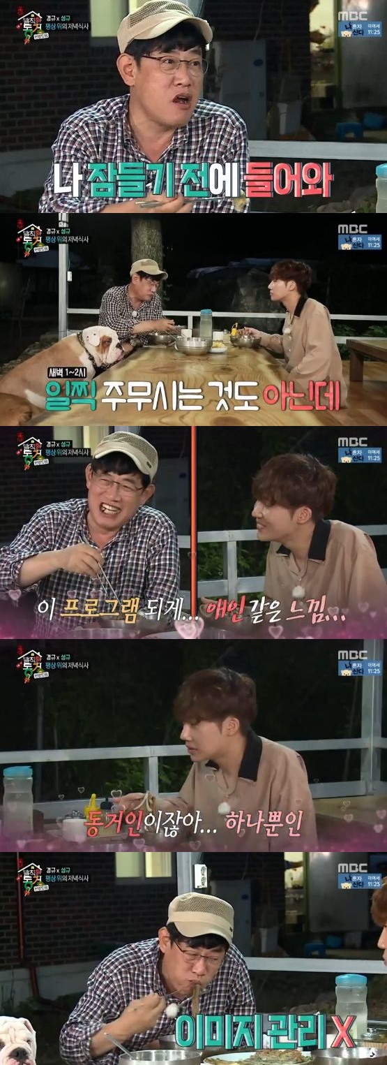 22일 오후 방송된 MBC 예능프로그램 '발칙한 동거 빈방 있음'에서는 이경규가 저녁 약속이 있는 성규의 귀가를 신경 쓰는 모습이 그려졌다.