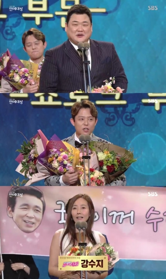 '2017 SBS 연예대상'에서 개그맨 김준현과 방송인 토니안과 강수지가 우수상을 받았다.
