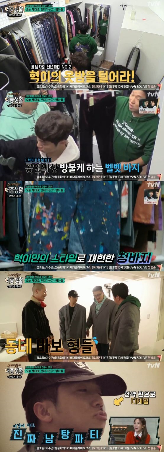 11일 오후 방송된 tvN 예능프로그램 '그 녀석들의 이중생활'에서는 오혁의 집에 찾아가는 MC 정형돈, 유세윤, 데프콘의 모습이 공개됐다.