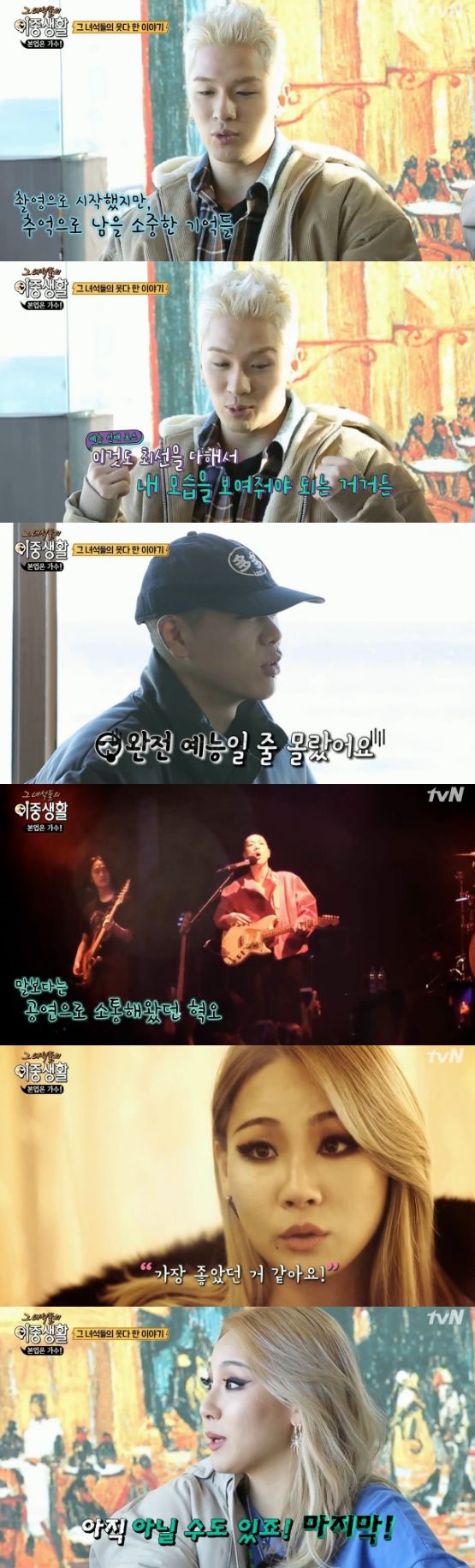 지난 11일 오후 방송된 tvN 예능프로그램 '그 녀석들의 이중생활'에서는 태양, 씨엘, 오혁의 마지막 이야기가 공개됐다.