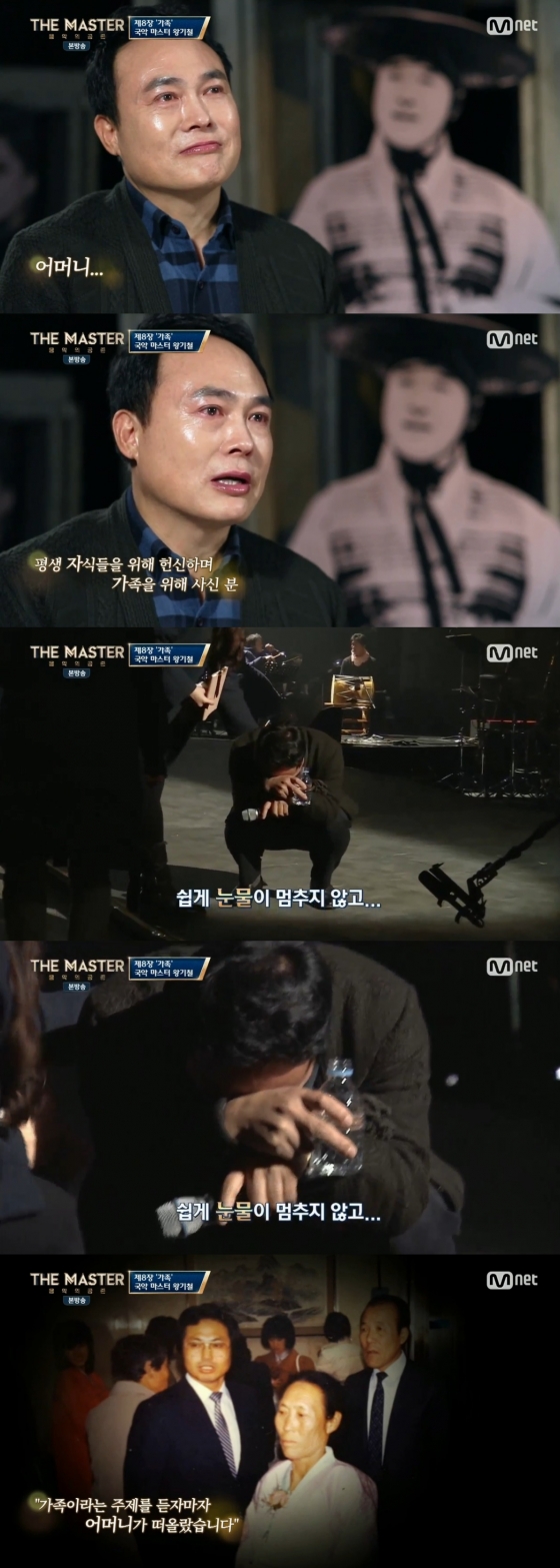 '더 마스터'에서 국악 마스터 왕기철이 어머니를 생각하며 리허설 도중 눈물을 흘렸다.