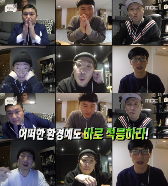 20일 오후 방송된 MBC 예능프로그램 '무한도전'에서는 한파주의보 때문에 집에서 오프닝을 맞는 멤버들의 모습이 그려졌다.