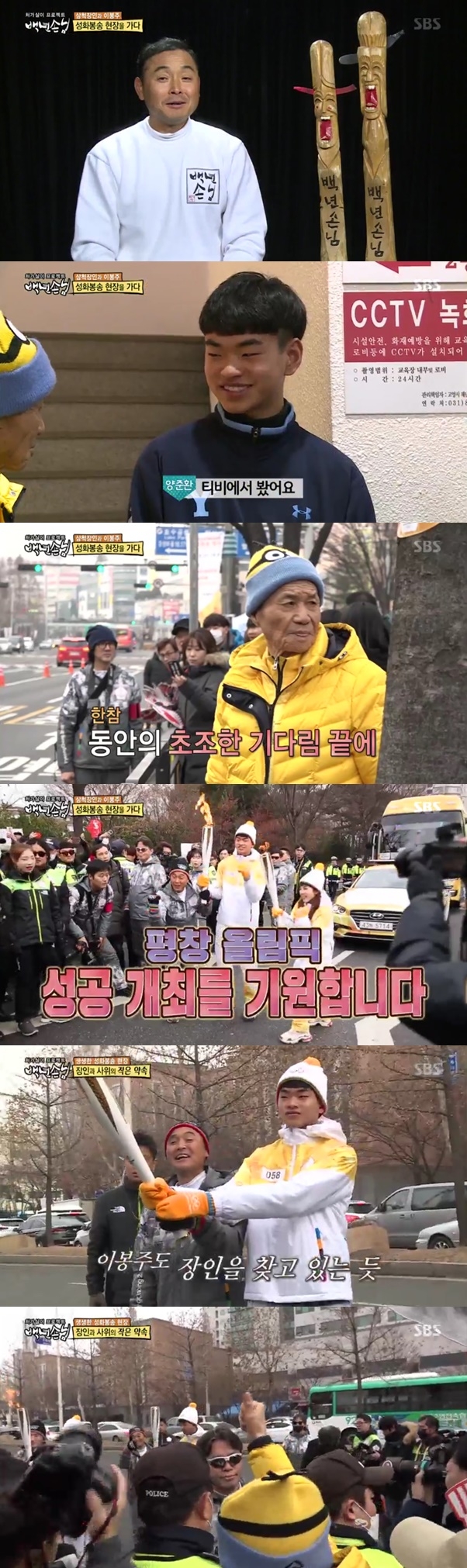 27일 오후 방송된 SBS 예능 프로그램 '백년손님'에서 이봉주가 성화봉송주자로 뛰는 모습이 그려졌다.