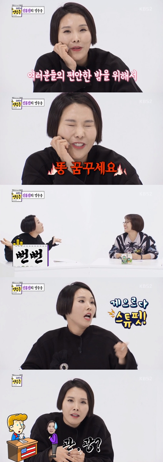28일 오전 방송된 KBS 2TV '김생민의 영수증'에서는 신봉선이 공감요정으로 출연해 MC 김생민, 송은이, 김숙 등과 함께 자신의 소비 영수증에 대해 이야기를 나눴다.
