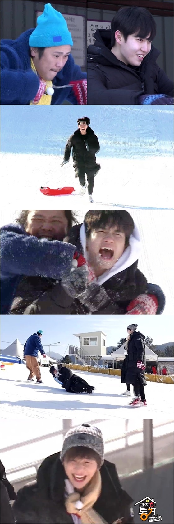 그런가 하면 동심으로 돌아간 동거인들이 눈싸움을 즐기고 있는 모습도 공개됐다. 그 중 옹성우는 육중완에게 꼼짝없이 붙잡혀 눈 테러를 당하는 데 이어 썰매에 실려 가고 있는 모습으로 포착돼 보는 이들을 폭소케 한다.