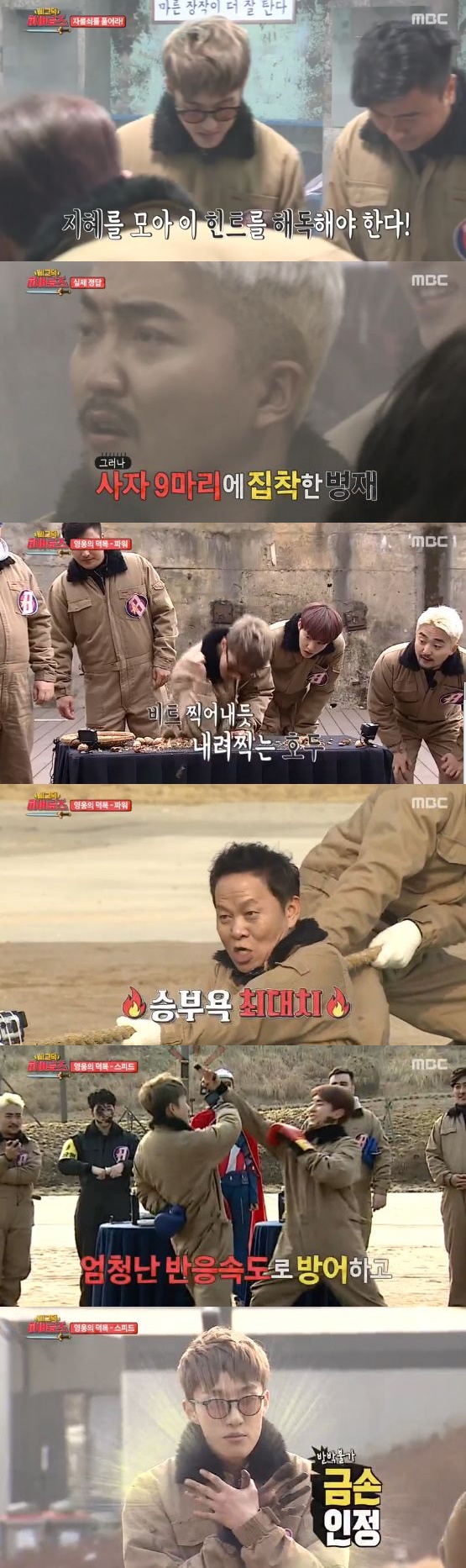 본격 훈련 전 후보생들은 연기가 자욱한 방에 갇혔고 암모니안 탄이 터졌다. 주어진 힌트로 자물쇠를 풀어야만 방을 탈출할 수 있었다. 힌트는 사자 9마리의 모습이 거꾸로 된 사진이었다. 유병재는 사자의 영문 스펠링인 'LION'을 거꾸로 돌리는 센스를 발휘해 자물쇠 정답을 이끌어냈다.