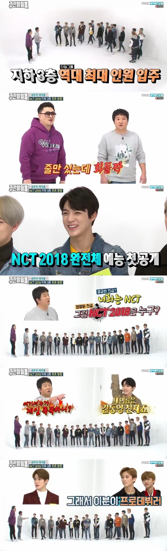 21일 오후 방송된 MBC 에브리원 예능프로그램 '주간아이돌'에는 NCT 2018 18명 완전체가 출연했다.