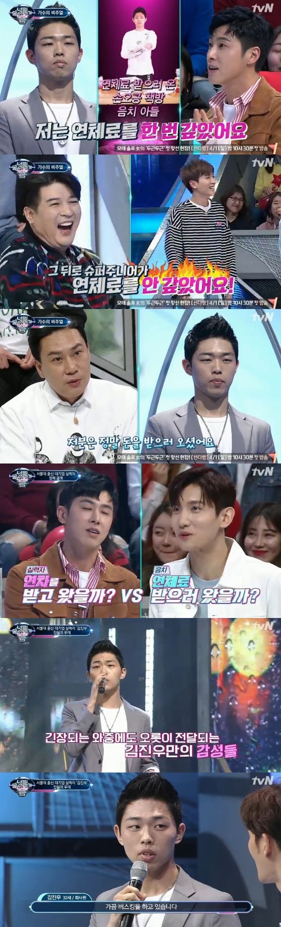 이에 MC들이 지금은 가수의 꿈을 완전히 포기했는지 묻자 김진우는 "지금은 사실 회사 생활에 만족하고 있다. 가끔 버스킹을 하고 있다"고 전했다.