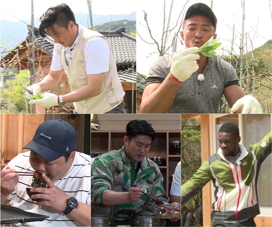 먼저 안정환과 추성훈은 콤비가 되어 남자에게 좋다는 '질경이'를 찾아 헤매는 모습이 포착돼 웃음을 자아낸다. 안정환이 나물과 잡풀을 구별하는 '금손 채집러'의 면모를 발휘하면 추성훈이 '근육 초식남'다운 섬세함으로 아기를 달래듯 나물의 흙을 털어내는 모습을 보였다.