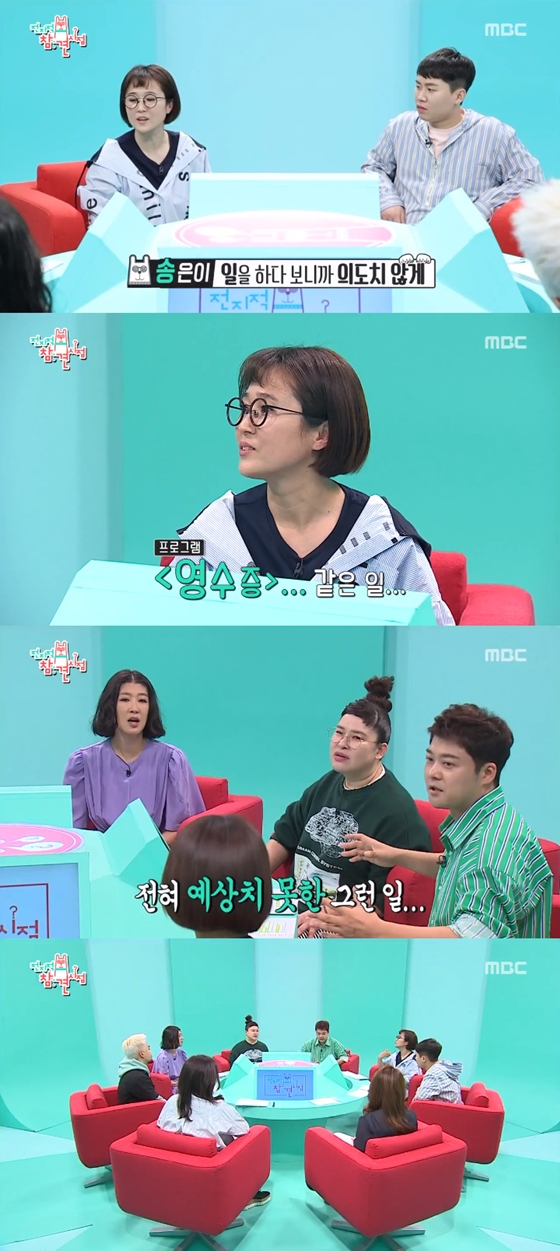 송은이는 스튜디오에서 자신의 일을 하면서 의도치 않게, 예상하지 못한 어려움이 생긴다고 털어놓았다. 이에 전현무가 어떤 것인지 묻자 "'영수증'('김생민의 영수증') 같은 그런"이라고 했다.