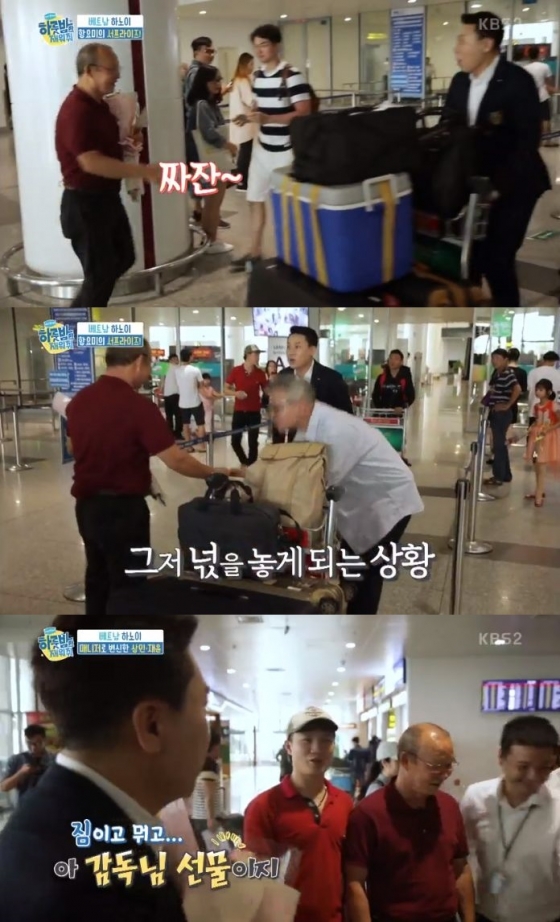 '하룻밤만 재워줘'에서 베트남 축구 국가대표팀 박항서 감독이 직접 꽃다발을 들고 이상민과 조재윤을 마중 나갔다.