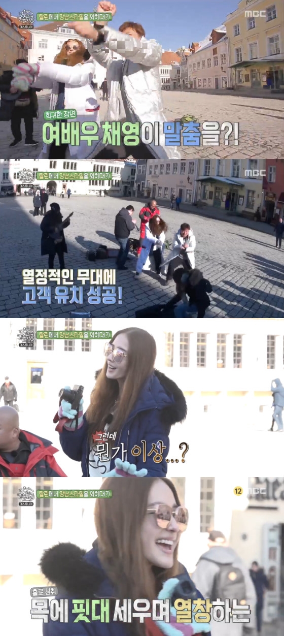 배우 한채영이 첫 버스킹 공연을 펼쳤다.
