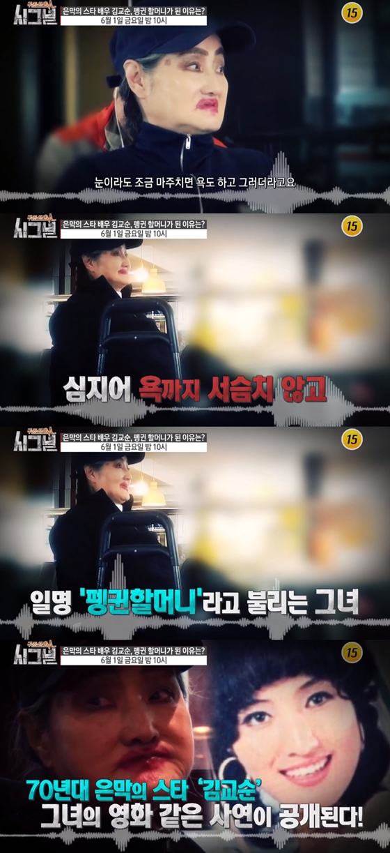 지난 1일 방송된 종합편성채널 TV조선 '시그널'에선 '은막의 스타 김교순, 펭귄 할머니가 된 이유는?'으로 꾸며졌다.