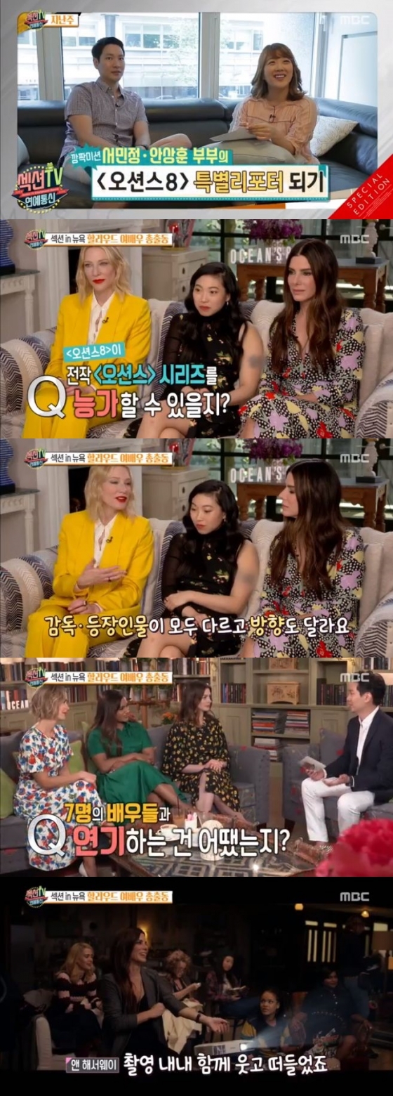 4일 오후 방송된 MBC 연예 정보 프로그램 '섹션TV 연예통신'에서는 서민정, 안상훈 부부가 영화 '오션스8' 출연진을 인터뷰하는 장면이 그려졌다.