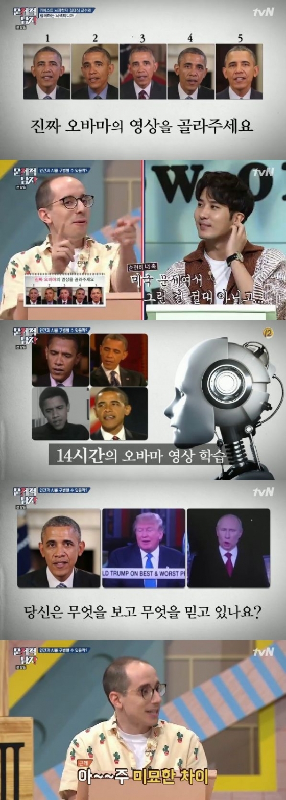 이날 방송에서 김대식 교수는 5개의 오바마 연설 영상을 보여주며 진짜 오바마를 찾으라는 문제를 냈다. 이에 출연진들은 아무 말도 못 하고 멍한 모습을 보였다. 타일러가 3번이 진짜 같다는 의견을 내자, 나머지 출연진들은 "나도 그런 것 같다"며 그냥 동조했다.