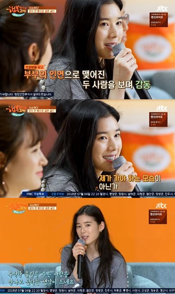 그러면서 정은채는 "마지막 26년차 부부가 제가 가야하는 모습이 아닌가"라며 "뭔가 묵직하고 한방의 울림을 주는 사람을 만나고 싶다는 생각이 든다"라고 자신의 이상형을 밝혔다.