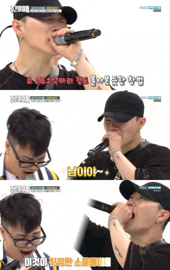 '주간아이돌'에서 행주가 소몰이 창법을 선보였다.