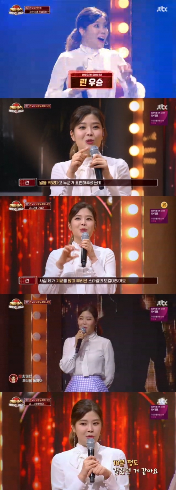 가수 린이 '히든싱어5' 원조 가수로서 자존심을 지켜내며 최종 우승을 차지했다.