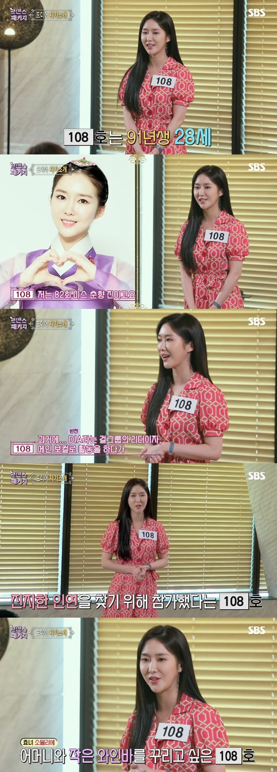 그중 108호 조승희는 유독 눈에 띄었다. 91년생 28살인 조승희는 미스 춘향 진 출신으로 걸그룹 다이아(DIA)의 리더이자 메인보컬로 활동했었다고 소개했다. 현재 직업은 와인 소믈리에라고 밝혔다.