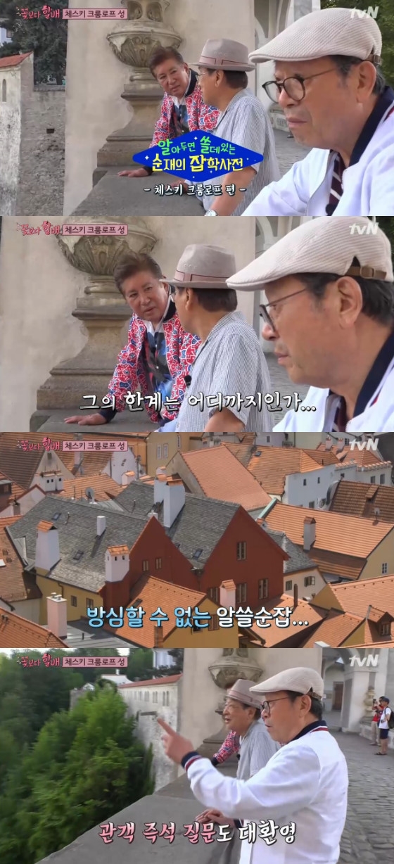 체스키 그롬로프 성으로 향하는 중, 그리고 도착해서도 이순재의 설명은 계속됐다. 잘 보존된 문화재를 보며 "우리나라도 5000년 역사를 자랑하는데 침략을 많이 받아 손실됐다"며 안타까워한 것을 시작으로 이순재는 다른 할배들의 질문세례에도 끄떡없이 답했다. 특히 영화 제목부터 연출한 감독, 배우, 그리고 그 배우의 이력과 유명한 작품 등 주제만 주어지면 관련 지식이 폭풍처럼 쏟아져나왔다. 어느새 할배들은 궁금한 것이 있으면 자연스럽게 이순재로 향했다.