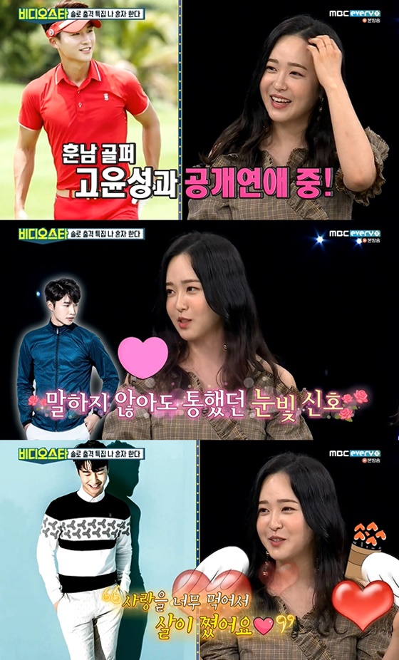 MC들이 '사랑을 받으니까 얼굴이 예뻐졌다'라고 말하자 유소영은 "요즘 사랑을 너무 많이 먹어서 살이 쪘다"라고 고윤성에 대한 애정을 드러냈다.