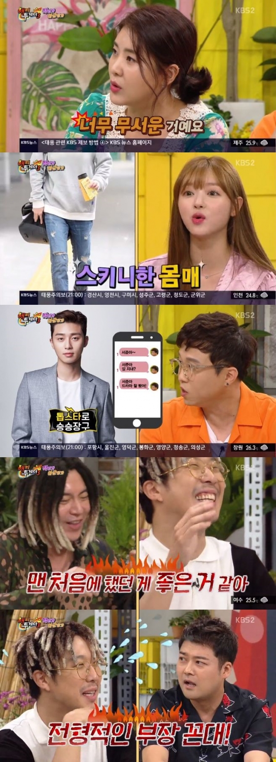 '해피투게더3'에서 강유미, 하하, 박성광 등이 게스트로 출연해 재치 있는 입담을 과시했다.