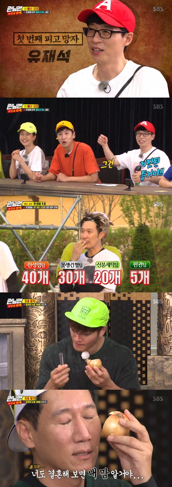 판관 팀인 김종국, 지석진은 환생볼 추첨에 실패해 최종 벌칙을 받게 됐다. 두 사람은 참회의 눈물 세 방울을 획득해야 퇴근할 수 있었다. 김종국이 먼저 눈물 세 방울을 흘려 퇴근, 지석진은 눈에 양파까지 가져다 됐지만 좀처럼 눈물을 흘리지 못했다.