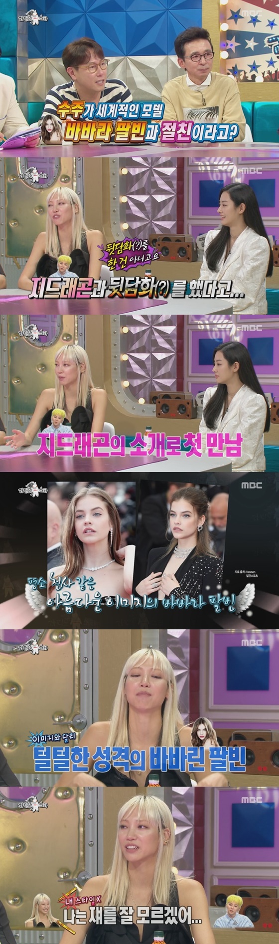 '라디오스타'에 출연한 모델 수주가 절친 그룹 빅뱅의 멤버 지드래곤부터 탈색, 바바라 팔빈과의 에피소드 등을 아낌없이 방출했다.