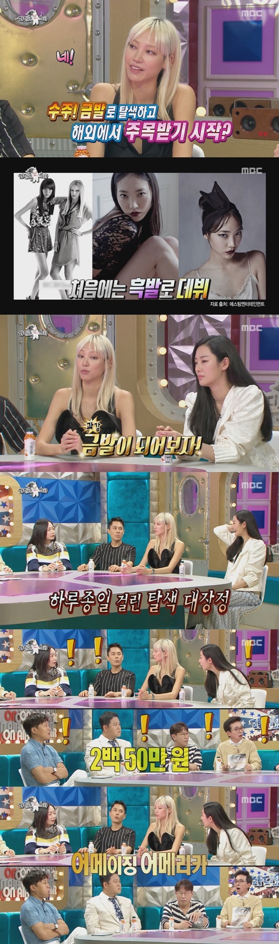이날 방송에서 수주는 자신이 금발로 탈색하고 나서 사람들의 주목을 받았다고 털어놨다. 그는 "데뷔 후 처음에 반응이 없었다. 그런데 금발을 해보라는 제안으로 탈색을 하게 됐다"고 말했다. 이어 "탈색하는 과정이 생각보다 힘들더라. 미용실을 오픈할 때인 아침에 들어가서 저녁까지 하고 나왔다"고 말했다.