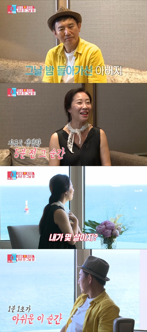 손병호는 "6년 전에 여기서 1박을 못한 아쉬움이 있었다. 바로 아버님이 돌아가셨기 때문에"라고 말했다. 최지연도 "그때 아이들 다 데리고 정말 좋은 풍경에 좋은 시설에 처음으로 왔다. 친정 아빠 얼굴도 보고, 어머니랑 즐겁게 보냈다. 그랬는데 그날 밤에 아버지가 돌아가셨다"고 밝혔다. 이어 "아버님이 지병이 계셨다. 그날 마침 생일날이었다. 혹시 모르니까 아이들 다 데리고 왔다. 그게 정말 운명인 게 병환 중인데도 고맙다고 말씀하셨다. 숙소 가서 짐 풀고 밥 먹으려고 하는데 전화가 왔다. 곧장 3일동안 장례를 치렀다. 잊을 수가 없다"고 설명했다.
