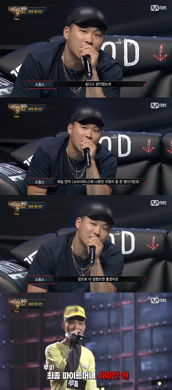이후 스윙스는 루피를 향해 "'쇼미더머니777' 방송 출연과 관련해 마음이 바뀌게 된 계기가 뭐에요?"라고 물었다. 앞서 루피는 '쇼미더머니' 출연자들에 대해 욕설을 퍼부었기 때문. 이어 "저는 제일 먼저 '쇼미더머니'에 나왔던 지원자 중 한 명이다. 그것도 한창 이 프로그램이 욕 먹을 때. '쇼미더머니'에 나오는 게 X같다고 말했던 사람들을 보면서 기분이 안 좋았다"고 덧붙였다.