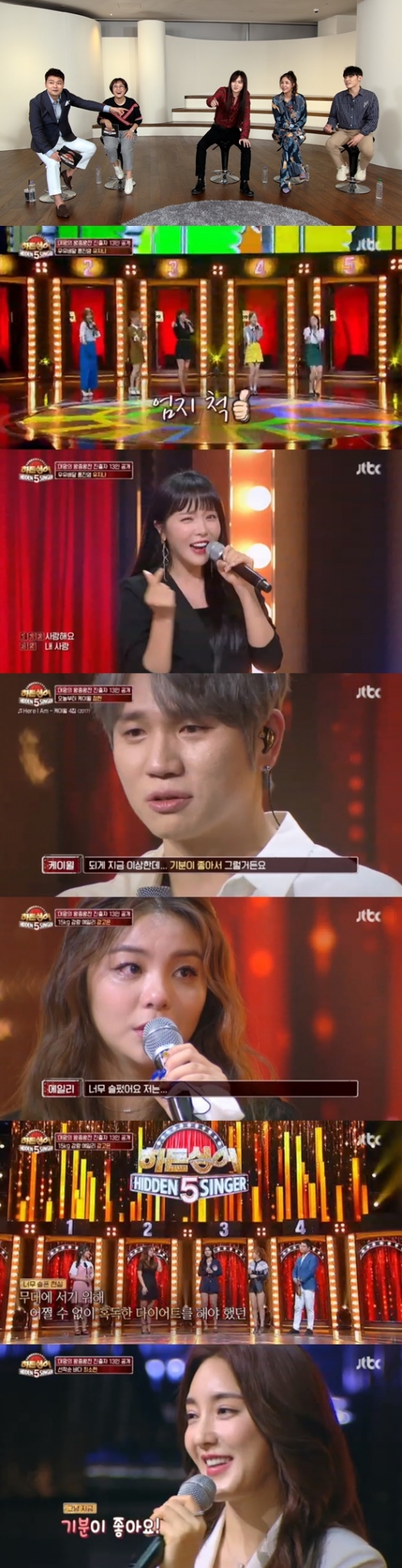 9일 방송된 JTBC 예능 프로그램 '히든싱어 시즌5'에서는 왕중왕전 가수 13인을 소개했다. 이날 방송에는 MC 전현무와 안방마님 송은이 외에도 원조가수로 출연한 바 있는 김경호, 신지, 휘성이 출연해 함께 왕중왕전에 열을 올리고 있는 모창능력자와 원조가수의 모습을 비롯해 시즌5 레전드 무대를 돌아 봤다