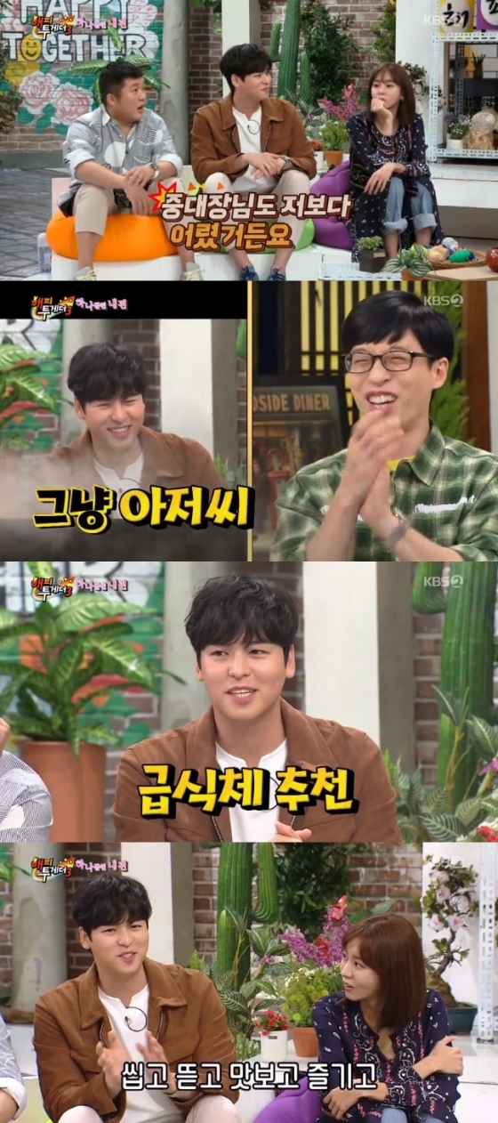 '해피투게더3'에서 이장우가 군대에서 '급식체'를 배웠다고 고백했다.