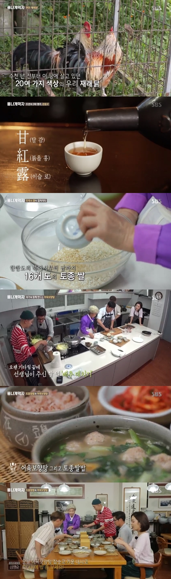 21일 오후 방송된 SBS 예능프로그램 '폼나게 먹자'에서는 토종쌀, 토종닭, 감로주를 식재료로 얻은 출연진의 모습이 그려졌다.