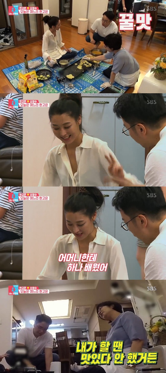 한고은은 가족들과 함께 명절 음식 만들기에 나섰다. 신영수 역시 한고은을 도와줬다. 이를 본 한고은의 시어머니는 "나한테는 (신영수가) 맛있다고 말 안했거든"이라 말하며 한고은을 칭찬했다. 이후 한고은은 명절에 대가족이 만나나는 것을 동경했다고 고백했다. 그는 "혼자 오래 살다보니까 (이런 분위기를) 동경했다. 명절이라는 게 더 외로움을 느끼는 날이었다. 나는 갈 곳이 없어서 저렇게 갈 수 있다는 것과 가족이 부대끼고 하는 게 정신 없을지라도 너무 즐겁다"고 말했다.