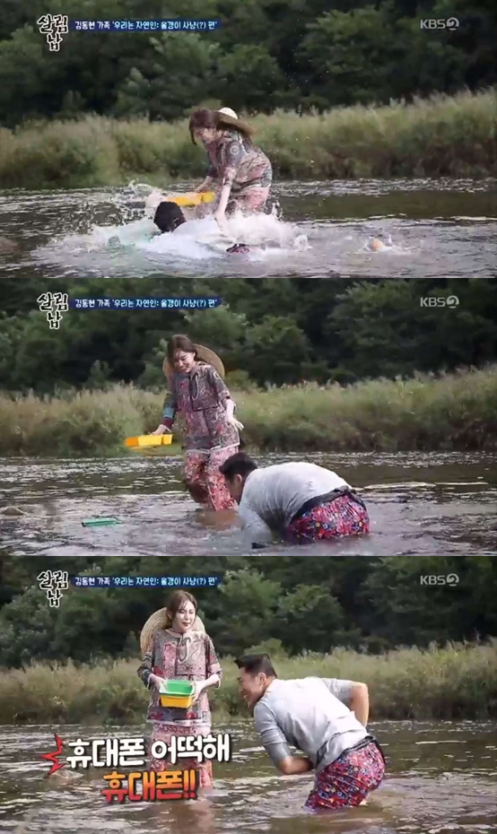 종합격투기 선수 김동현이 아내 송하율과 계곡에서 다슬기를 잡다 어설프게 넘어졌다.