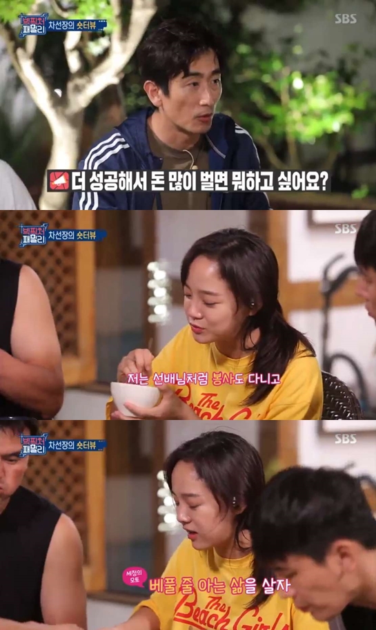 차인표는 김세정에게 "더 성공해서 돈 많이 벌면 뭐하고 싶어요?"라 물었다. 김세정은 "차인표 선배님처럼 봉사도 많이 다니고, 베풀 줄 아는 삶을 살고 싶다"고 말했다.