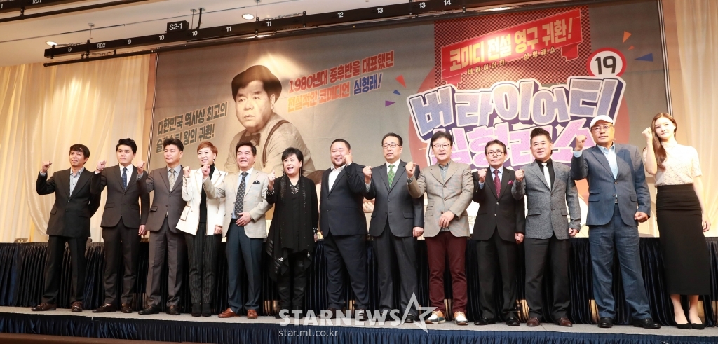 연예방송[★포토]'버라이어티 심형래쇼' 기대하세요!발행 : 2018.10.08 ・ 11:19임성균 기자가수 목비와 심형래, 옥희를 비롯한 관계자들이 8일 오전 서울 강남구 양재동 더케이호텔에서 열린 '버라이어티 심행래쇼' 제작발표회에 참석해 포즈를 취하고 있다.<저작권자 © 스타뉴스, 무단전재 및 재배포 금지>버라이어티심형래추천 기사임성균 기자기자홈좋아요 연예-방송의 인기 급상승 뉴스연예-방송의 최신 뉴스