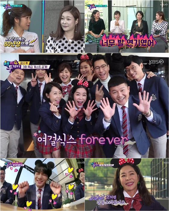 이 방송에는 2000년대 인기를 모았던 '해피선데이-여걸식스'(이하 '여걸식스')의 멤버 정선희, 현영, 이혜영, 강수정과 진행을 맡았던 지석진이 '해피투게더4'(이하 '해투4')의 두 번째 게스트로 출연했다. 언니들의 거침없는 토크는 '폭로전'이었다. 모처럼 '해투4'로 동창회를 가진 '여걸식스' 멤버들의 입담은 과거 인기 상승세를 달리던 센 언니들에 대한 추억을 떠오르게 했다. 또 지석진은 방탄소년단 멤버 진과 친분을 과시했지만 이를 믿지 못하는 MC들을 상대로 검증까지 받아야 하는 상황에 놓여 웃음을 자아냈다.