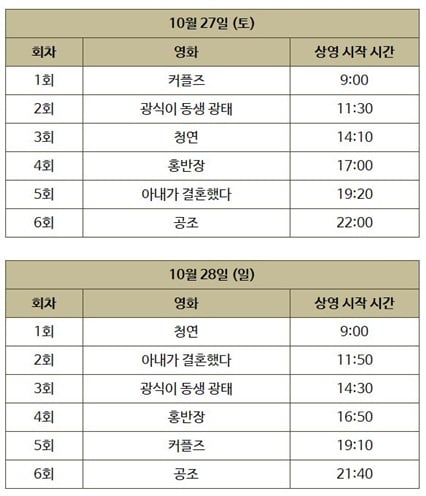 고 김주혁의 추모 영화제는 27일과 28일 양일 여의도 CGV 1관에서 열린다. 영화 '커플즈', '광식이 동생 광태', '쳥연', '홍반장', '아내가 결혼했다'가 이틀 간 상영 될 예정이다.