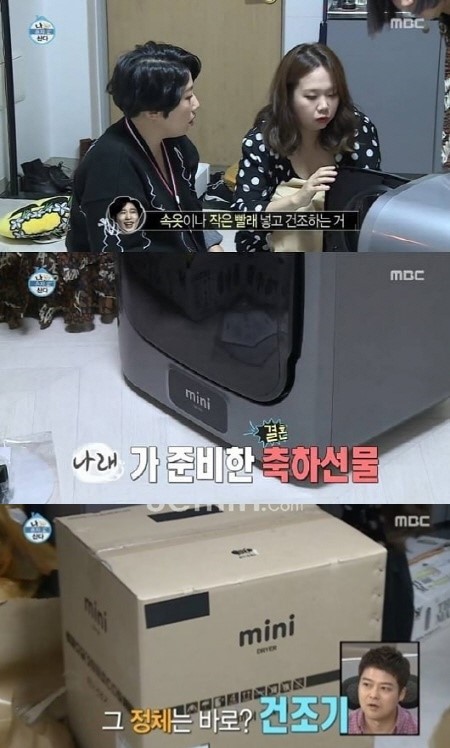 이날 방송에서 박나래는 홍현희에게 결혼 축하 선물로 미니건조기를 선물했다.